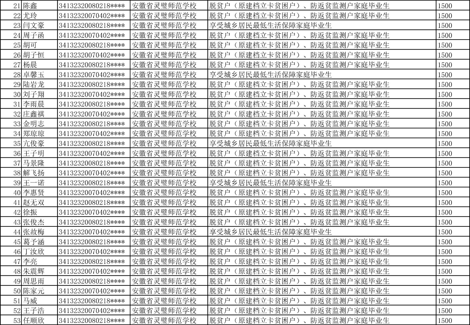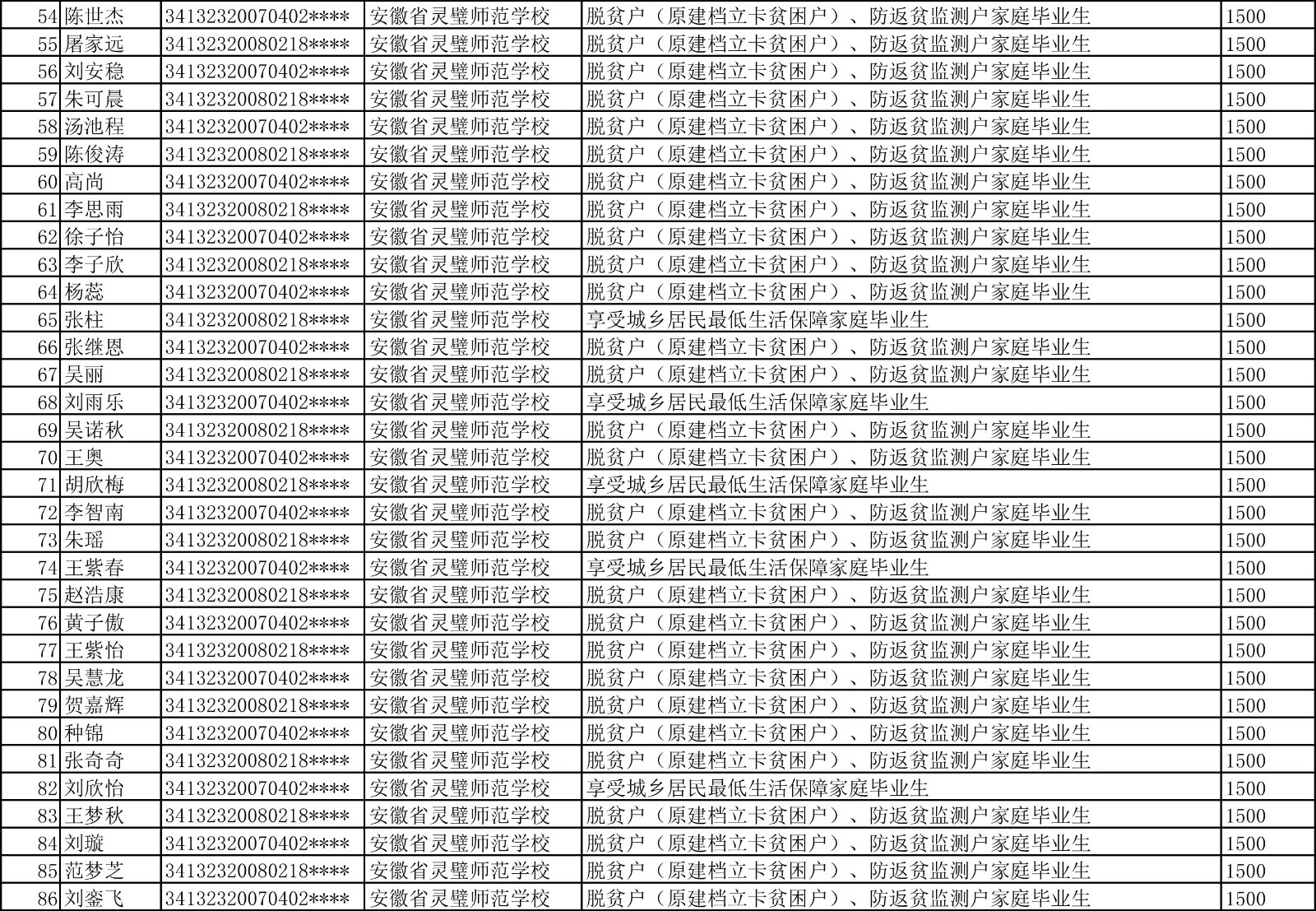 安徽省灵璧师范学校2026届困难毕业生求职补贴审核通过人员名单信息公示