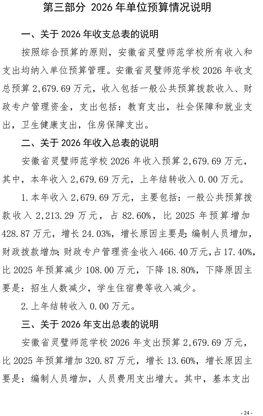 安徽省灵璧师范学校2026年单位预算