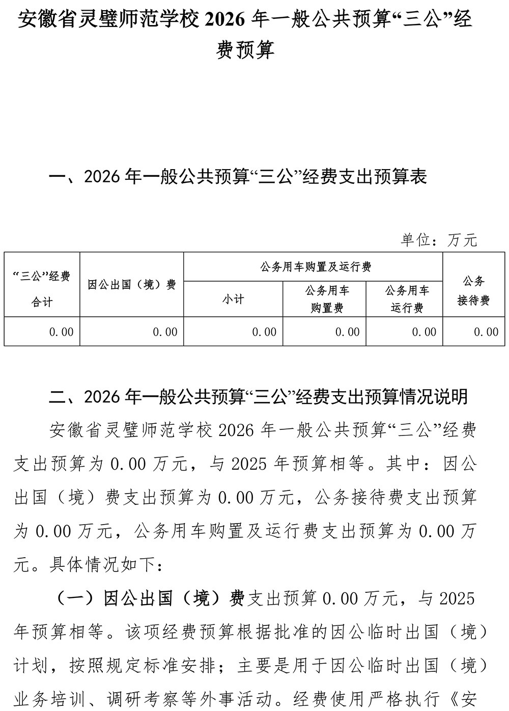 灵璧师范学校2026年一般公共预算“三公”经费预算