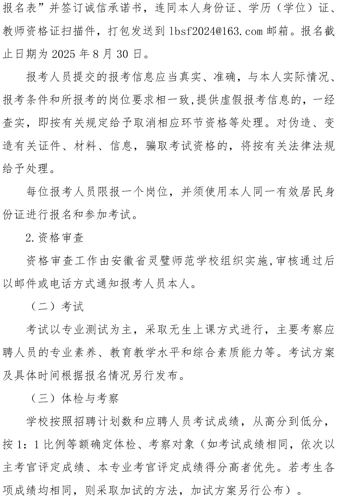 灵璧师范学校2025年秋季学期公开招聘教师公告